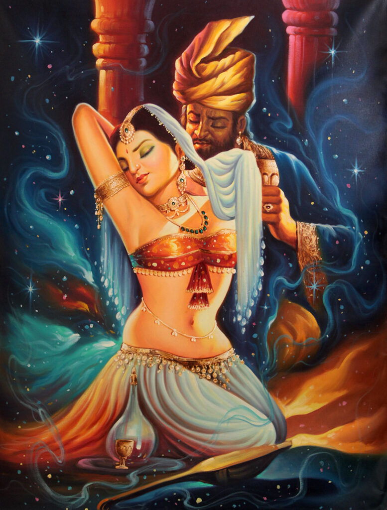 «There is a city called Nandanam, Joy. The ruler there is also called Nandana, and his son is Raja-shekhara, Royal Crown.» The son was married to Shashi-Prabha, the Splendor of the Moon. This Shashi-Prabha was seen by someone named Vira, the Brave, the son of Dhana-sena, the Warrior of Wealth, who desired her so much that he fell ill with a fever. He neither ate nor drank. Questioned by his mother, whose name was Yasho-devi, the Luminary of Glory, he stammered the cause of his affliction.